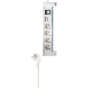 Tischsteckdosenleiste 4-fach mit 2xUSB Ladefunktion ,Schalter,16A / 3680W, weiß Alu , Kabel 1.5m